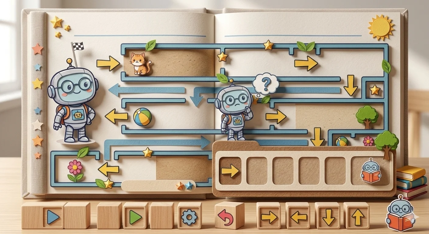 DC-Goiás Computação (GO-EF01CP01 e GO-EF01CP02): Criação de sequências lógicas (algoritmos) e decomposição de tarefas simples em etapas menores. BNCC Computação (EF01CO01 e EF01CO02): Identificação de padrões e uso de algoritmos (passo a passo) para a resolução de problemas estruturados.